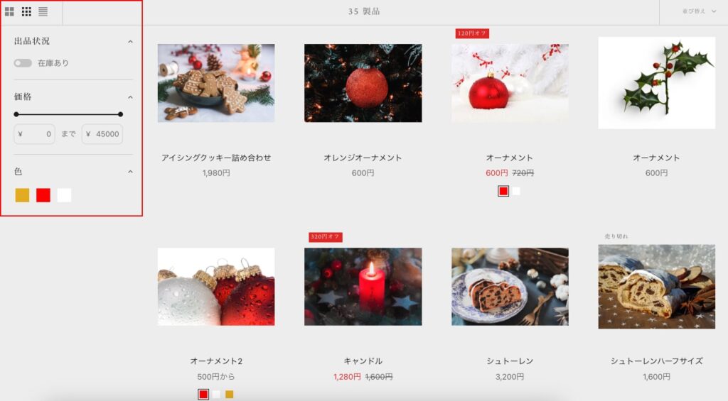 商品一覧ページに表示される商品の絞り込み機能のことを、「フィルター」と呼びます。