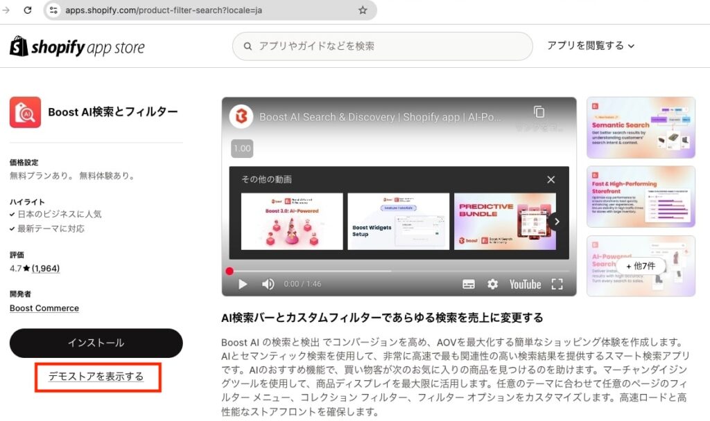 ちなみに有料アプリを使用する場合は、「Boost AI Search & Discovery」(Boost AI検索とフィルター)といったアプリを使用します。