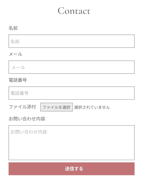 フォームはテーマの既存の形を利用することが多く、必要に応じて項目の変更を行います。