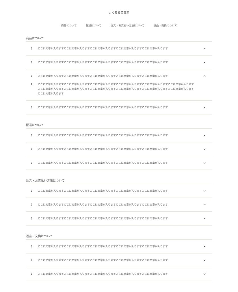 ECサイトの使い方や商品の購入にあたって生じると想定される疑問とそれに対する回答を書くページです。