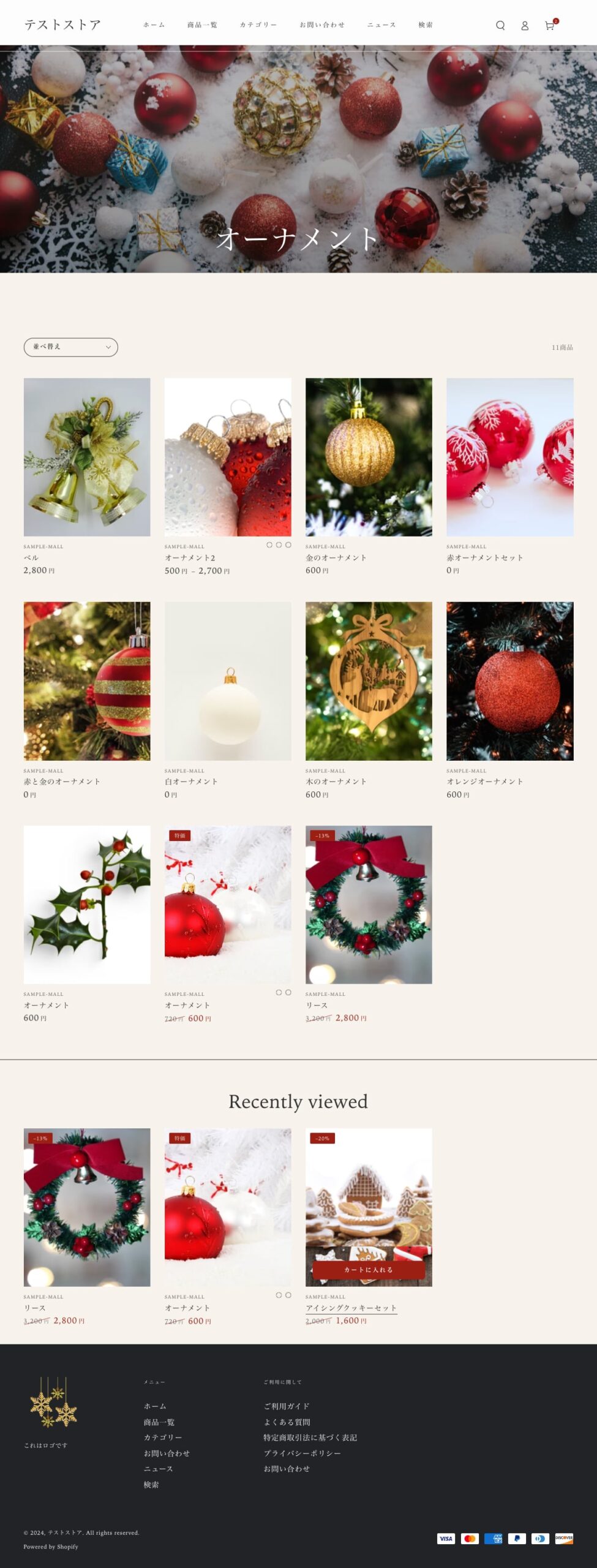 特定のコレクションに分類されている商品のみが表示されるページです。