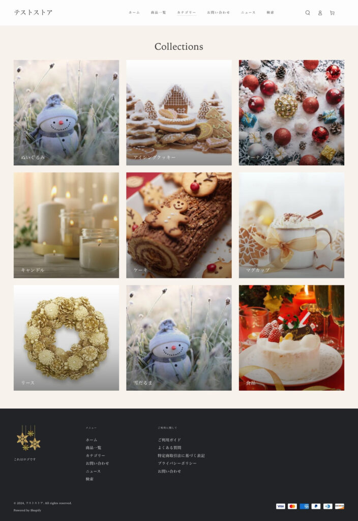 ストアに登録しているコレクション全てが表示されるページです。