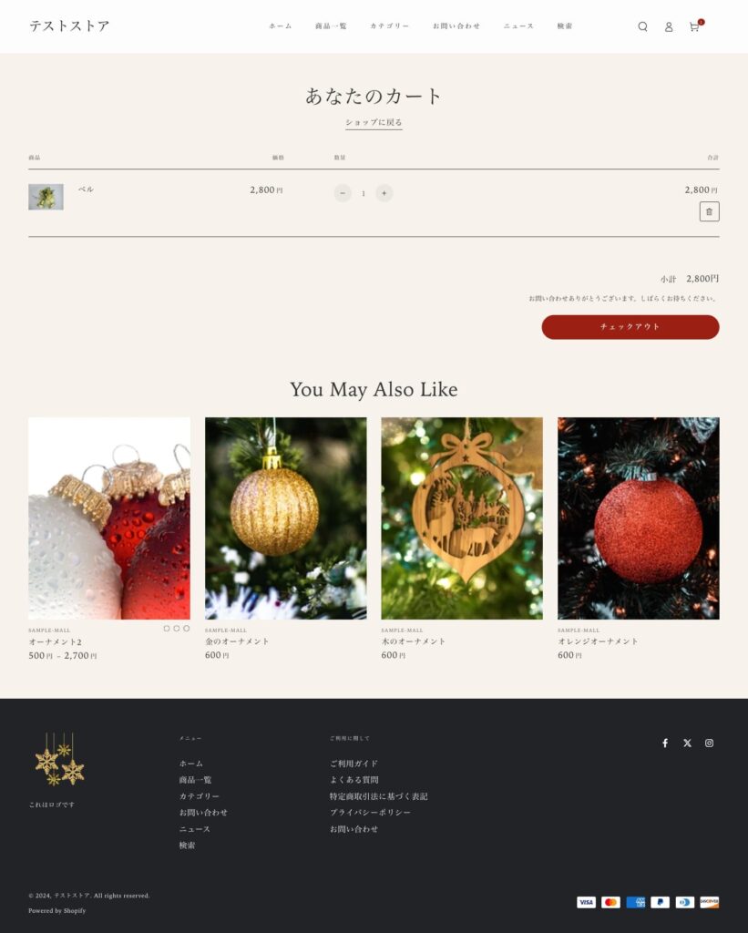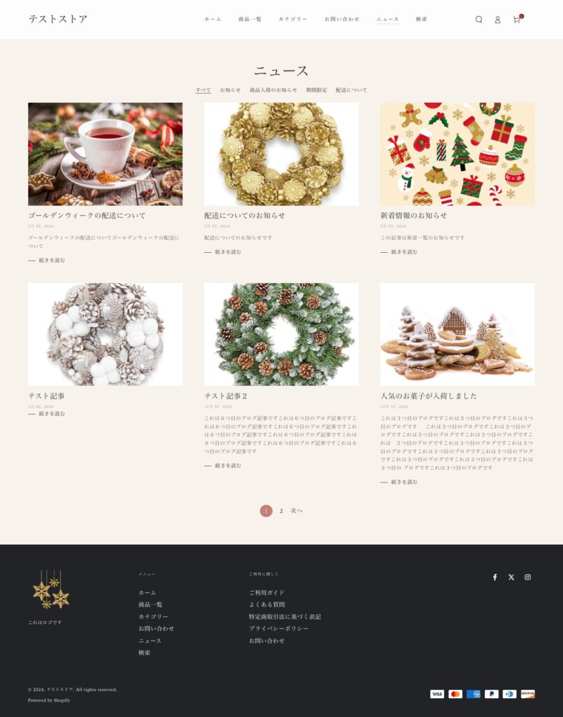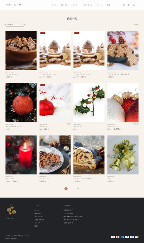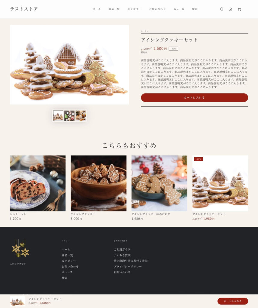 テーマにもよりますが、商品一覧ページと似た見た目となります。