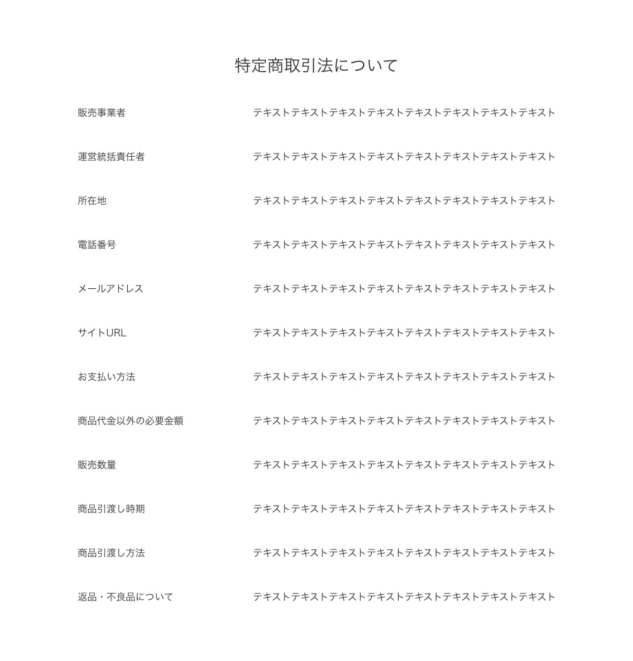 特定商取引法などテキスト中心ページ(/pages/〇〇)